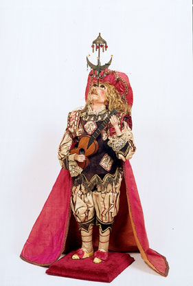 tête en porcelaine, mains en métal. H 22 cm.
