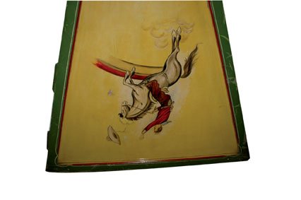 socle laqué bleu à filet or avec pavillon cor de chasse nickelé,