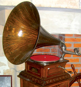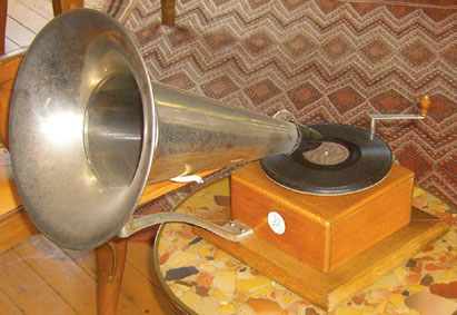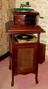 sculpté, tête de lecture, manivelle et pavillon nickelé.