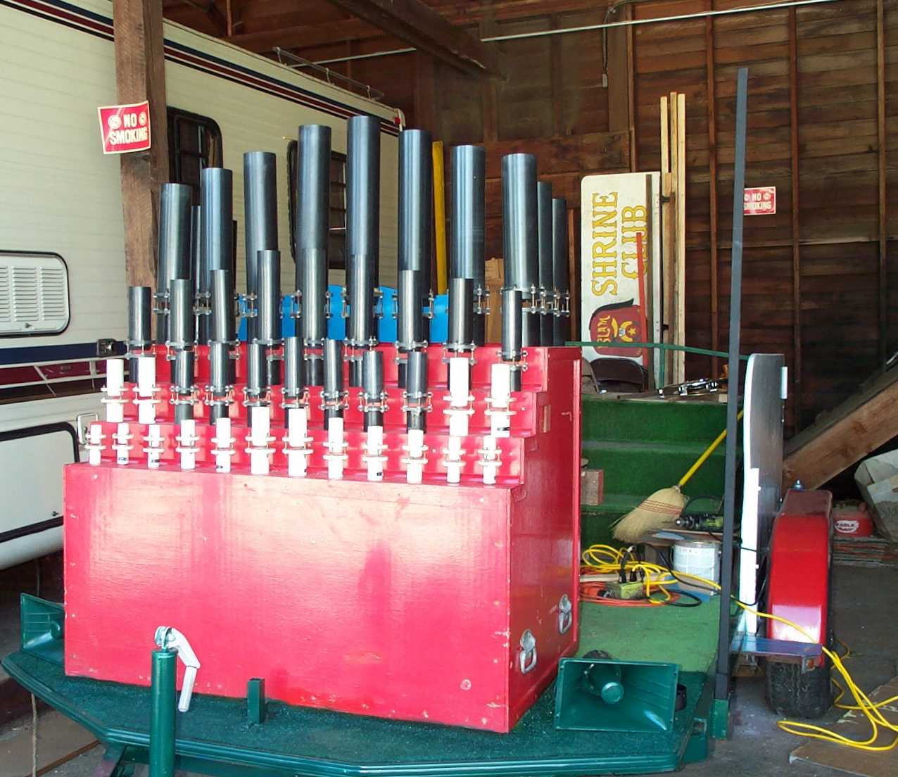 Melville McBride is now 90 years old, and has been out of the calliope business for quite some time. He told me that he has built a total of six of these units, Cal Calvert's was an early one. Most of his calliopes are in use with the Shriners.