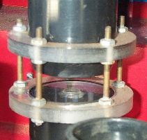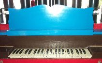 This calliope has 44 keys, from F below middle C to 3 octaves above, and a built-in 2 horsepower blower which sounds like a vacuum cleaner to me. I played with it: all the whistles work -- loudly! The pipes are black plastic (ABS) sewer pipes with support brackets of Lexan. It appears to be a design that can be built from hardware store materials. There is no mechanism for player rolls.
