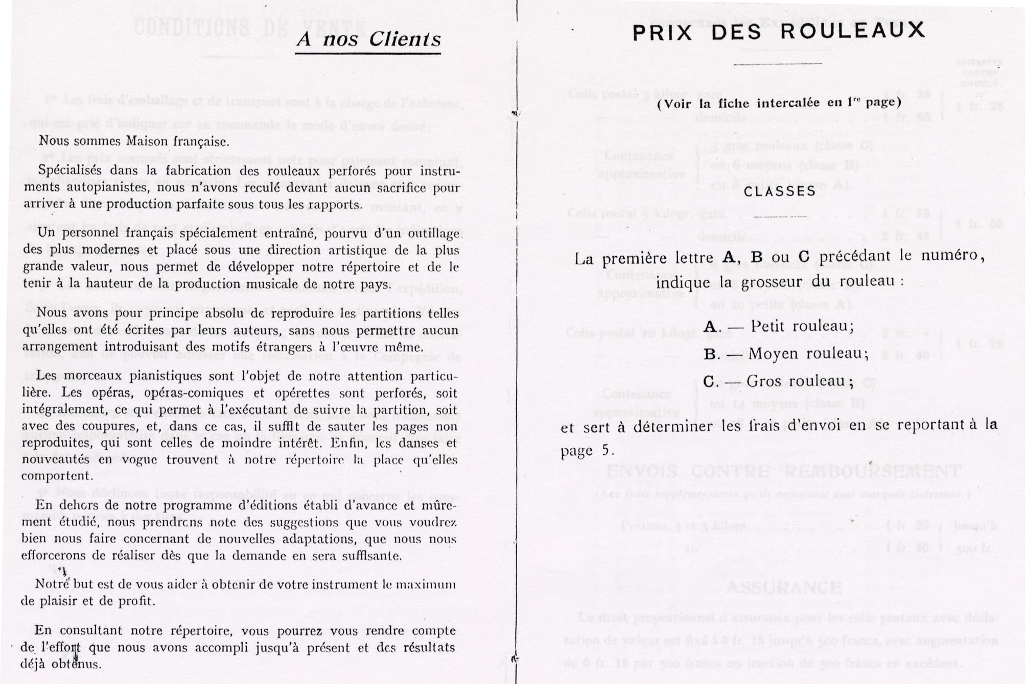 I think the introduction is interesting as they claim to follow exactly the sheet music (what we might complain about today). Also, you'll see that Ravel rolls are numerous. L'EMP had a massive production with a large range of choice. They made rolls for Odeola and Aeolian, and so it is time now to have a look at the image file, "EMP rouleaux alignement":