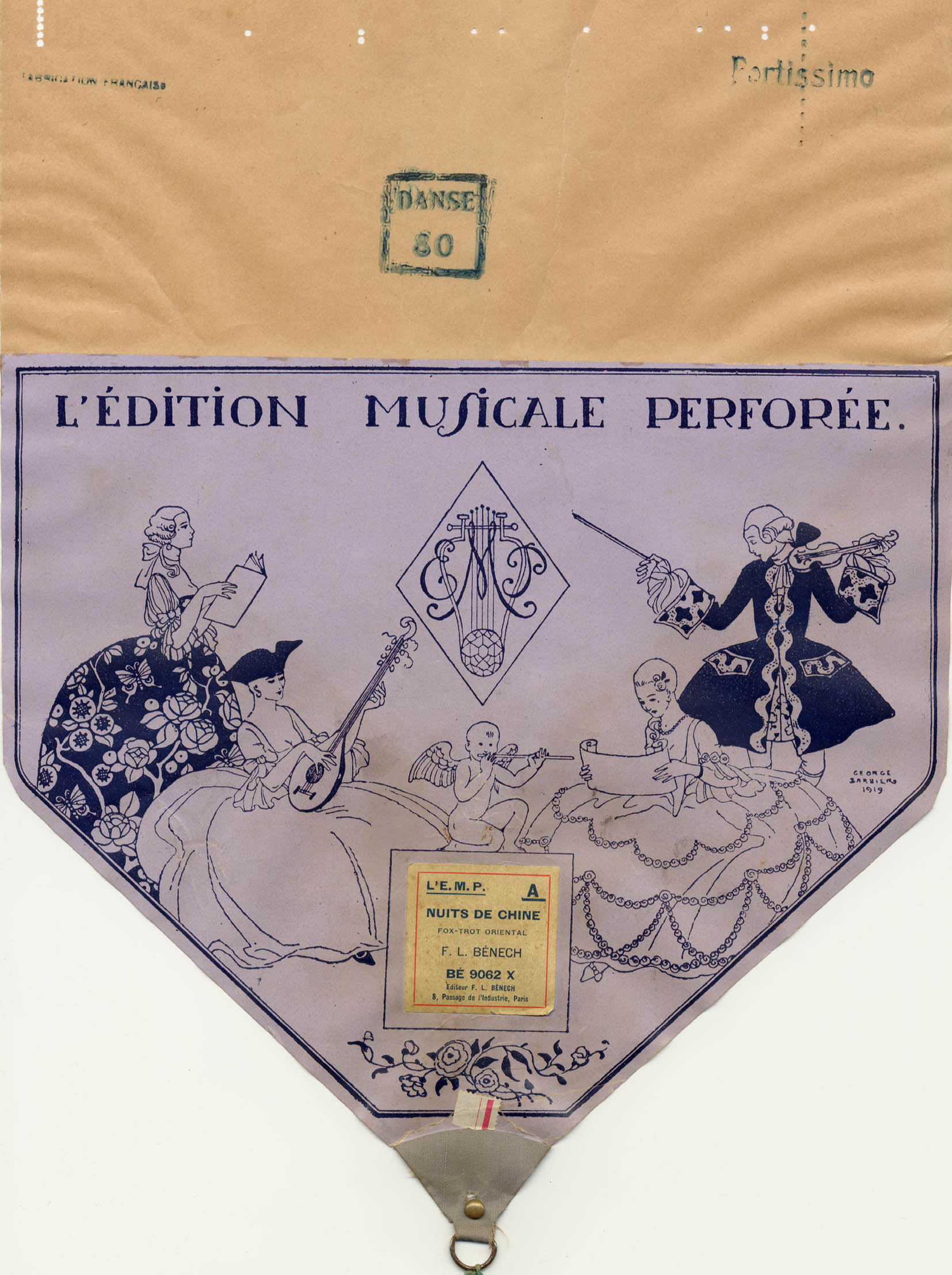 If we have a look at a typical and beautifully designed L'EMP roll (here "Nuit de Chine" [China Nights]), we'll discover exactly the same mention "fabrication française" that is printed on the Ravel roll -- the lettering and punching are the same.