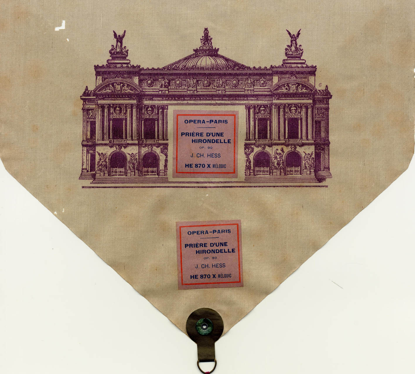Maunoury began production of rolls for 65-note and later 88-note pianos under the trade mark Opéra-Paris (see the beautiful illustrated advert published in the prestigious newspaper L'Illustration for Christmas 1913). The French taste for music is a commercial argument [selling point] which will be found during all the life of Maunoury firms. The piano rolls are good quality production. The leader is of fabric, with an engraving of the famous Opera in Paris (see image file operaparis_roll). Probably much too expensive, these fabric leaders will be replaced later with a leader of grey-green hard paper.