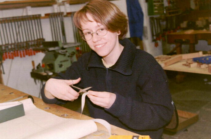 nice apprentice girl welcomed us. She was repairing a piano roll. A French