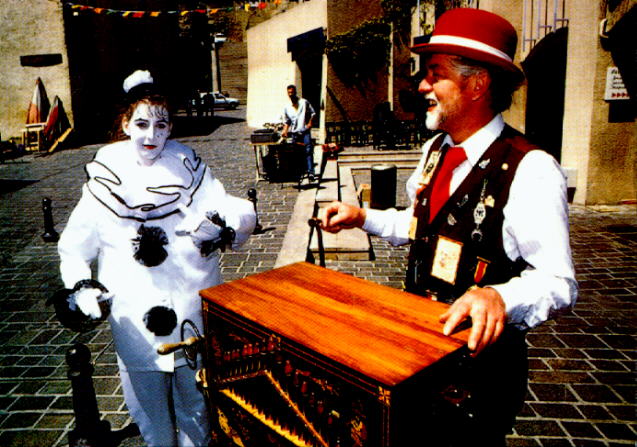 Mister Arnold is cranking an organ. Many people know her under the nickname