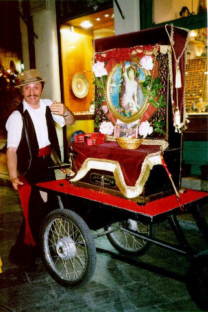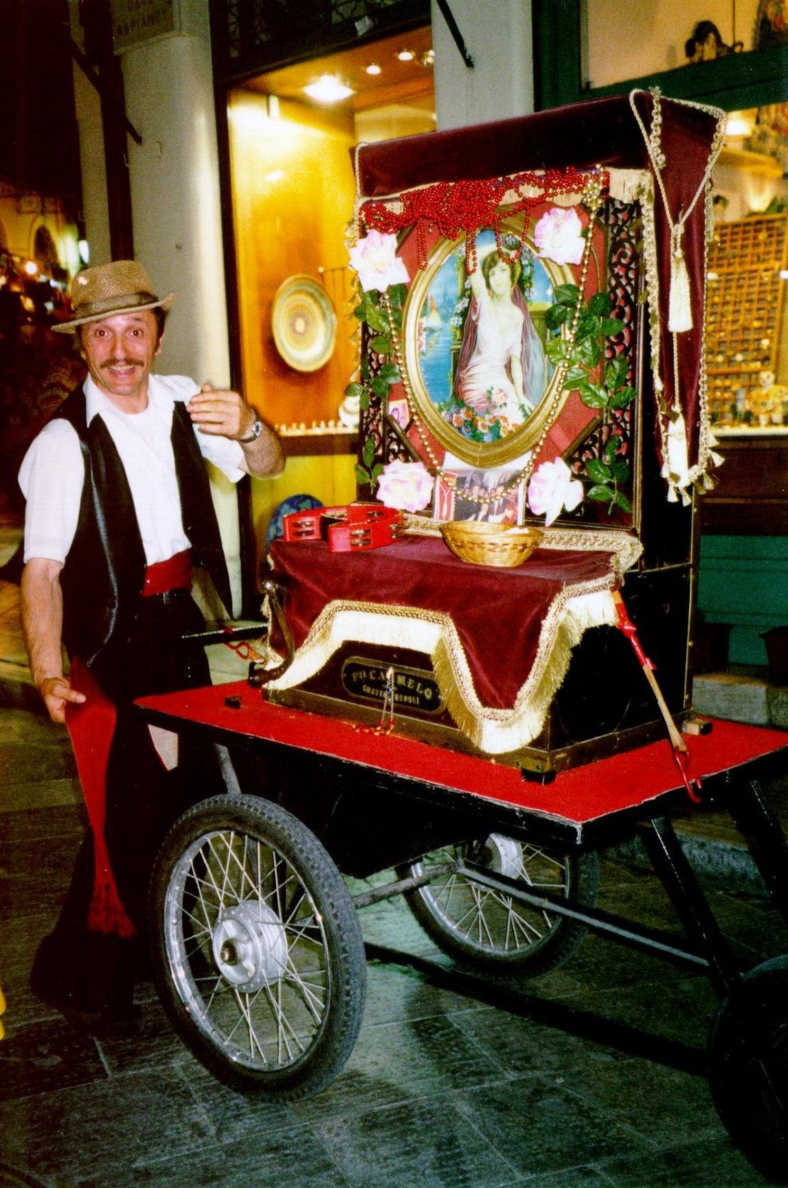 Recently I was enjoying an ouzo in the Plaka in Athens, Greece when an old man passed by pushing an organ grinder-like instrument on a push cart. As he turned the crank, the instrument made beautiful, bazuki music with an occasional ding from a bell. It was not an organ and did not sound like a barrel piano; it made a mandolin or bazuki sound.