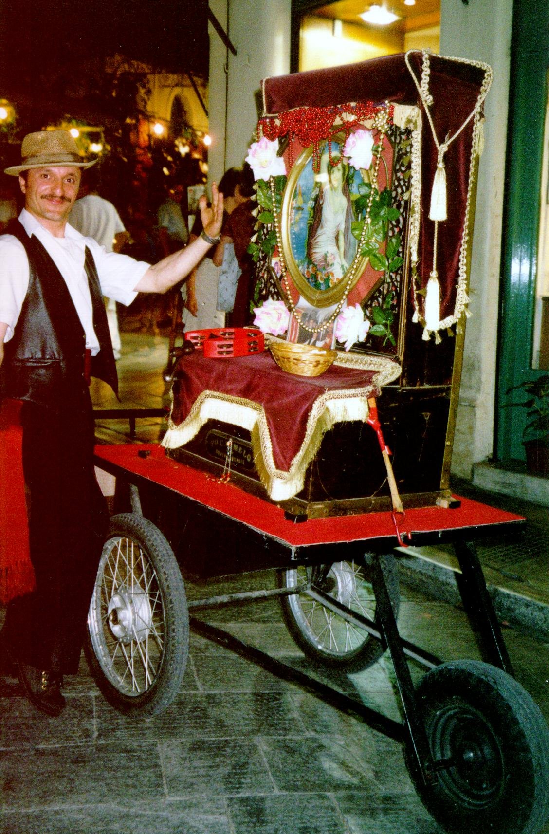 On the left side were two bars which he manipulated to change tunes. On the front was a glass heart with a picture of a girl. At the bottom, it said, "FSA. CARMELO" (I'm not sure of the "R") and then "Constantinopoli." The later refers to the city now known as Istanbul.