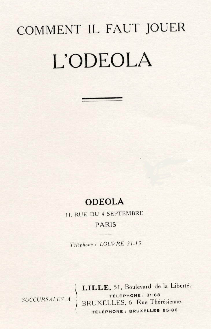 Attached to this message you'll find several pages from a booklet about "How to play the Odeola", and two advertisments dated 1919 and 1923.