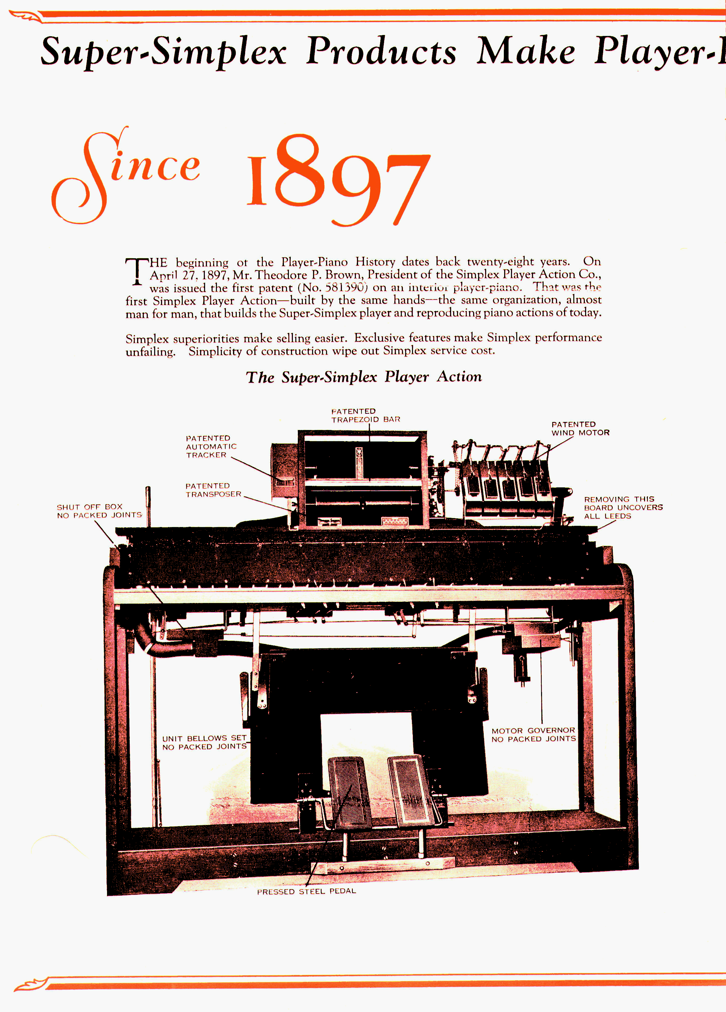 Here is a trade advertisement for the 1925 Super-Simplex Player Action. In my opinion, this is one of the most expressive, responsive, and logically designed player actions ever made. It still has relevance today when considering future player action designs. I speak from personal experience.