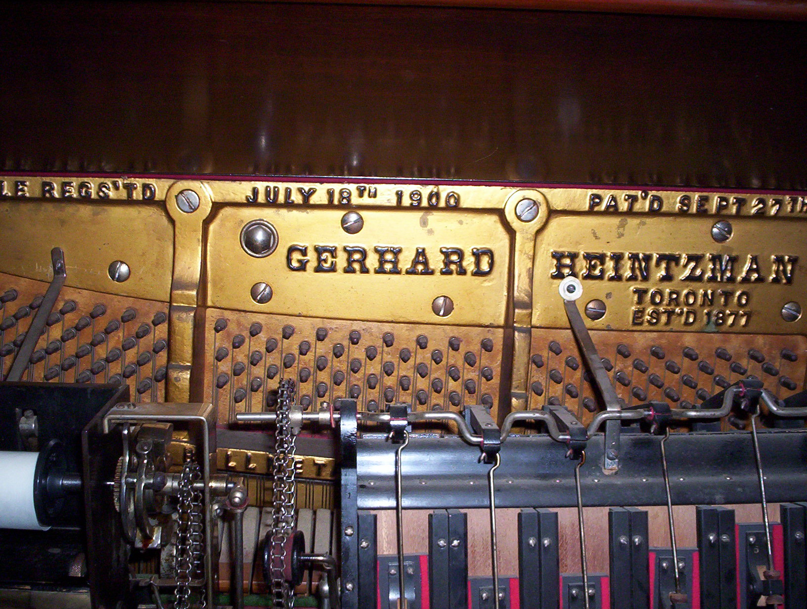 Hi All, I need your help again to identify a player action in a 1907 Heintzman [Canadian] player piano. Looks like a very well constructed mechanism, but I've never seen anything like it before. I've sent some pictures for the MMD Pictures site.