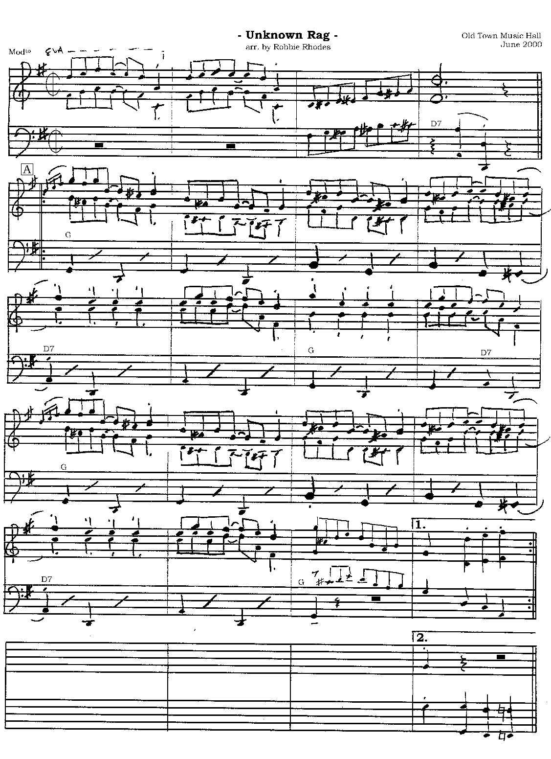 sheet music transcribed by Robbie Rhodes, page 1