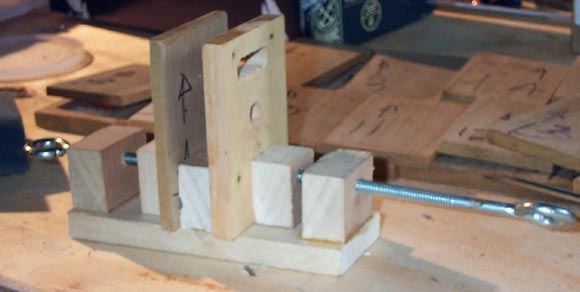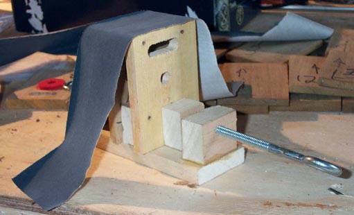 Here is a rig to hold the leaves of the square pulldowns parallel and at the correct gap, 3/4" as measured from the old cloth.