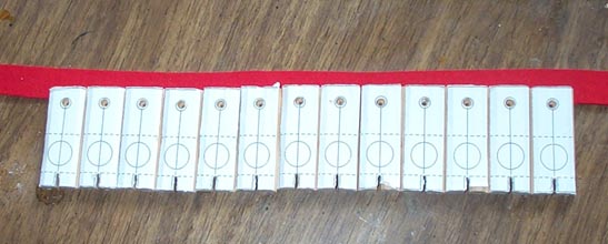Make the pallet seats in the manner described before. I used Organ Supply Industries #6101.01 3/64" fine white pallet felt and Leather Supply House medium goat.