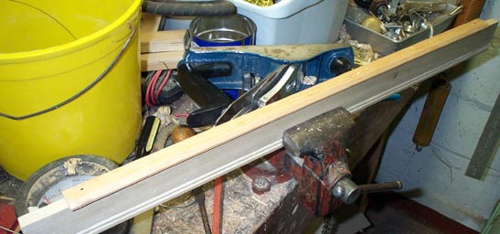 First make the pallet stick stock. I picked through the 1/4" lattice moldings in the lumberyard, till I found one that was nearly quarter sawn, so the finished pallet would stay flat. I have no joiner, so the angled edges were made with a plane. The vee shaped spring groove in the center was the hardest part. I ended up carving it with a veining chisel, and finishing it with sandpaper folded around the edge of a wooden block.