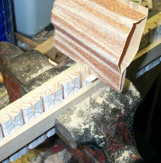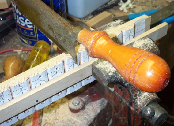 Then the back of the scrap wood was sawn off by the depth of the front pin slot; the slot was cut, and trimmed to the correct width with several layers of folded sandpaper.