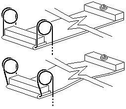 Aeolian used an arrangement that I have never seen before, to maintain tension and flatness in the flap valves. It is very clever, and can hold the leather strips flat to the boards with very little extra force. At 2-1/4" WC, but with feeders 5 times the volume of ordinary player piano feeders, one needs as small a pressure drop across the flap valves as possible, to keep the pumping effort down.