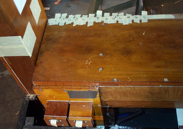 tube hole, to pressurize the bass chest. The lettered tapes cover