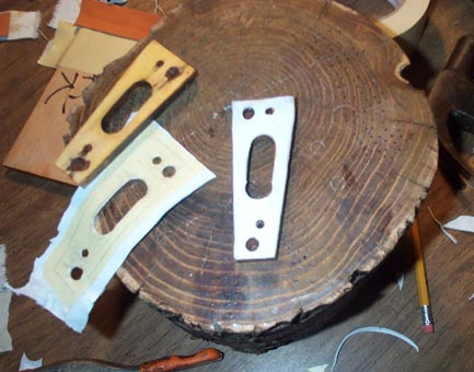 Two wood spacers that go between the ends of the motor and the box sides were gasketed. Rubbings using masking tape and a soft pencil were made as an aid to punching the leather.