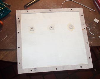 New packing was glued to all the edge joints, and gasket punchings were glued around the three holes where screws from the outside attach the flimsy back pneumatic leaf to the rear wall of the box.