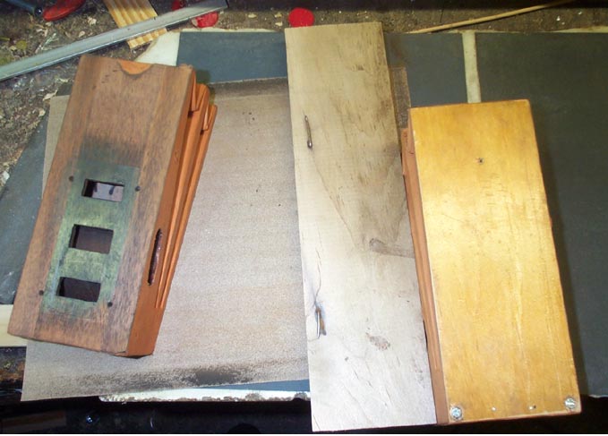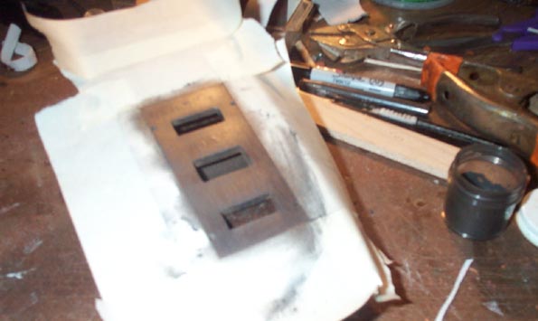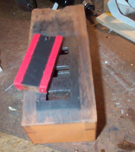 The valve blocks, and the valve surfaces are coated with graphite. Just wet your finger and rub it in. Scrape off any big limps of graphite with your fingernail. It's the water that does the trick; it slightly raises and opens the grain of the wood, allowing the graphite to mingle with the wood fibers. When the wood dries, it will go back flat, with the graphite particles trapped among the surface fibers. Then burnish the mating surfaces by simply rubbing them together. If the sanding was done right, the entire mating surface will become uniformly shiny, showing perfect contact over the whole area.