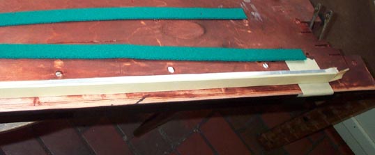 Then glue the two strips of action cloth on with just a narrow streak of glue. Guide their back edges firmly along the stop fence, so their front edges form a very straight line 1/18" in front of the stop board.