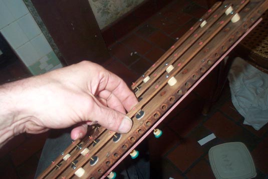 Then the assembly is installed, first without the wind box, so the valve motion can be observed. Using the keyboard, each note is played, and the valve is seen to rise and fall.