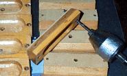 The gaskets were glued onto the blocks, and trimmed to length with scissors. Then the screw holes were whiffed out with a wire size drill, slightly larger than the original hole. Modern wood screws are theoretically the same size as the originals, but in fact their rolled threads have a slightly larger peak diameter on the threaded section, than the cut threads on the old ones. It is important that the threads do not get a grip on the clearance hole in the cup, so that the screw is perfectly free to draw the cup tightly to the board.