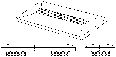 All the pouches, small and large, have the same size wooden follower, with two 3/8" felt "bottoming pads". The pads used near the bass ends of the ranks, are softer and very slightly thinner 9/64" white felt. The treble pads are firmer 3/16" red felt.