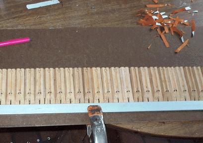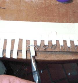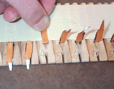 I hate to take so much bandwidth for such a seemingly trivial detail, but it had to be done. It was somewhat tedious, making 696 staples, and 348 of each kind of tab, plus a lot of extras to make up the ones I messed up. Even with some kind of special tooling, and pneumatic staplers, it must have been tedious work for Aeolian. I often feel sorry for the poor immigrant girls who toiled day after day for 12-1/2 cents an hour, in Garwood, NJ, doing all the thousands of things needed to build an Orchestrelle.