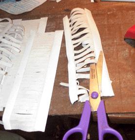 Finally the dried strips were punched with a 1/8" hole, and then cut apart through the punched hole, to form the half-circular notch in the tab.