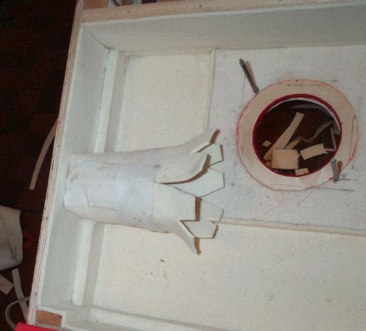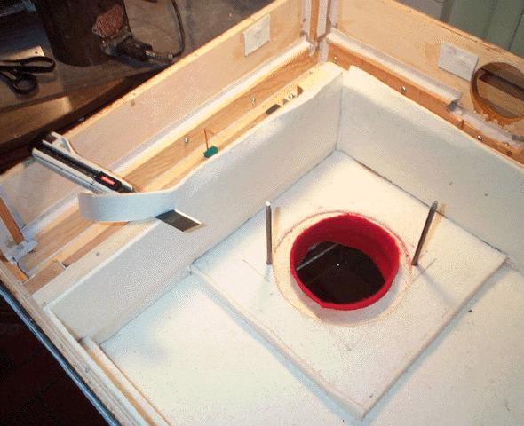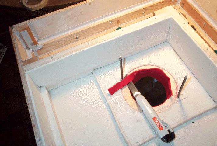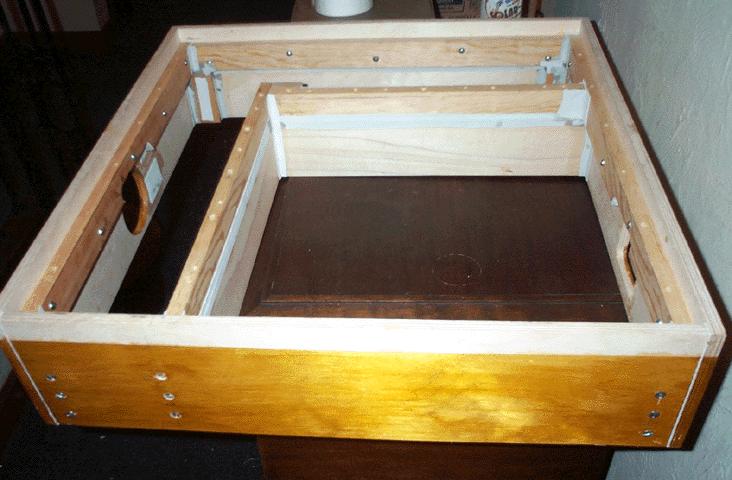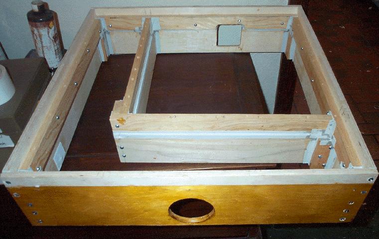 The framework of the box is made, from 1 x 6 poplar. To give an idea of the scale, the box outside dimensions are 24" square. All the joints are sealed with strips of cheap kidskin skiver.