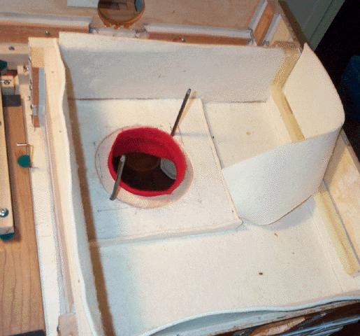 The inlet opening from the blower is lined with felt, and an additional noise reducing felt sock is tacked to the inlet.