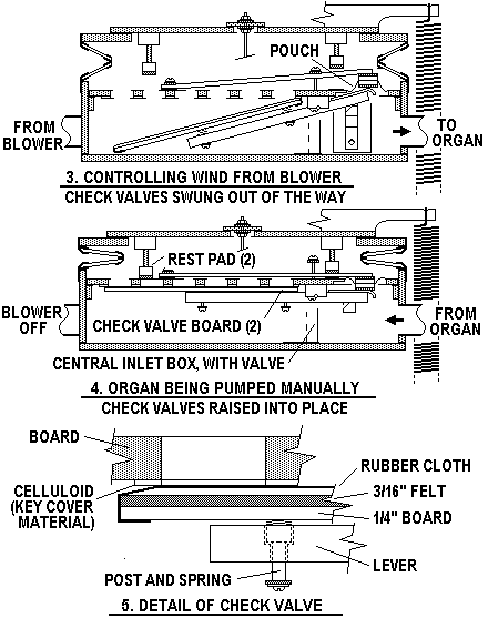 This drawing shows details of the two big check valve assemblies that swing closed when the blower is off, to permit manual pumping.