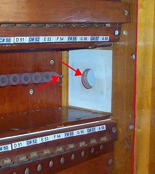 This was discouraging and tedious work, but I kept at it. I finally reached a state where every one of the 348 pallets opened properly, and closed perfectly tight, on command from the keyboard or test roll. I don't want to take a rank chest down, ever again!