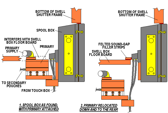So it was necessary to reconfigure the whole thing, ending up with the spoolbox by itself, and the primary valve assembly as a separate component located lower down in the space below the swell box.