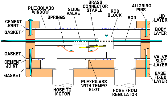 The tempo valve was one of the items that did not come with my instrument. I had a similar Aeolian tempo valve from a pipe organ, which gave me some design ideas, but it could not be reused. Because of weakness of the unrebuilt organ motor, someone in the past had carved a big groove on the bottom of the slider, in an attempt to increase the capacity, rendering it unusable.