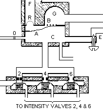 With 2, 4 and 6 open and 0 closed, the suction maintained in chamber C produces the First Intensity.