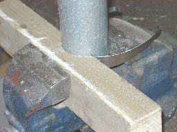 diameter iron tube and a wood block hollowed out to match its surface over